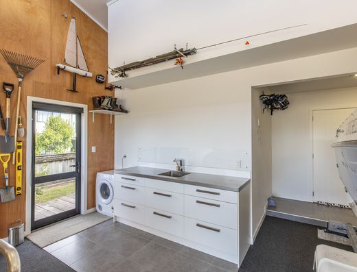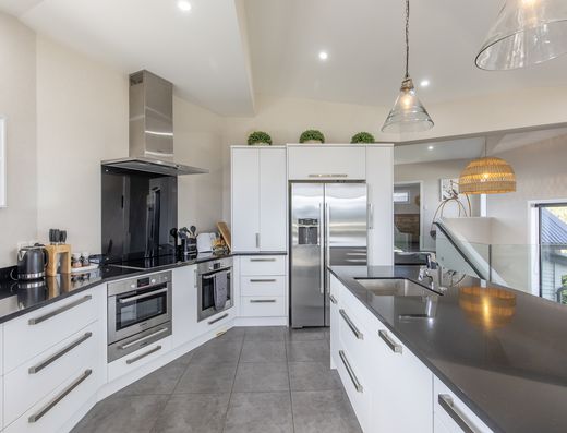 The heart of the home, the kitchen, includes a walk-in pantry and is ideal for entertaining indoors and out. The dining area flows seamlessly onto a deck with easy access to the BBQ and outdoor seating, perfect for lingering gatherings. The beautifully maintained grounds feature a spa area for late-night stargazing. For hobbyists, there's a high-stud additional garage, the "Mancave," perfect for storage and tinkering.